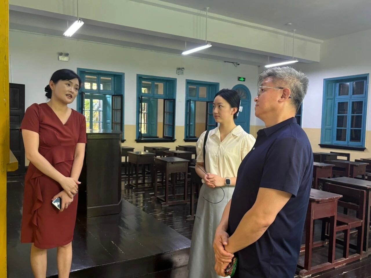 张颖为沙峰讲解毛主席在校期间的活动大事记