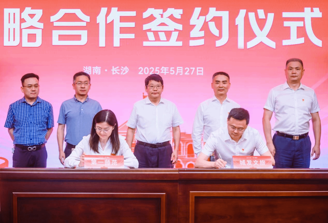 5月27日上午,为深入贯彻落实习近平总书记考察湖南第一师范学院(城南书院校区)时的重要讲话精神,深化校企产教融合建设,共同推进长沙文化旅游与教育的深度融合和创新发展,我校与长沙城发文旅集团在城南书院校区举行了战略合作签约仪式。校党委书记罗成翼,长沙城发集团党委书记、董事长邹春林等出席活动。双方约定,将在校企联动、项目开发、合作运营、产品协同及整合营销等五个核心领域进一步深化合作。