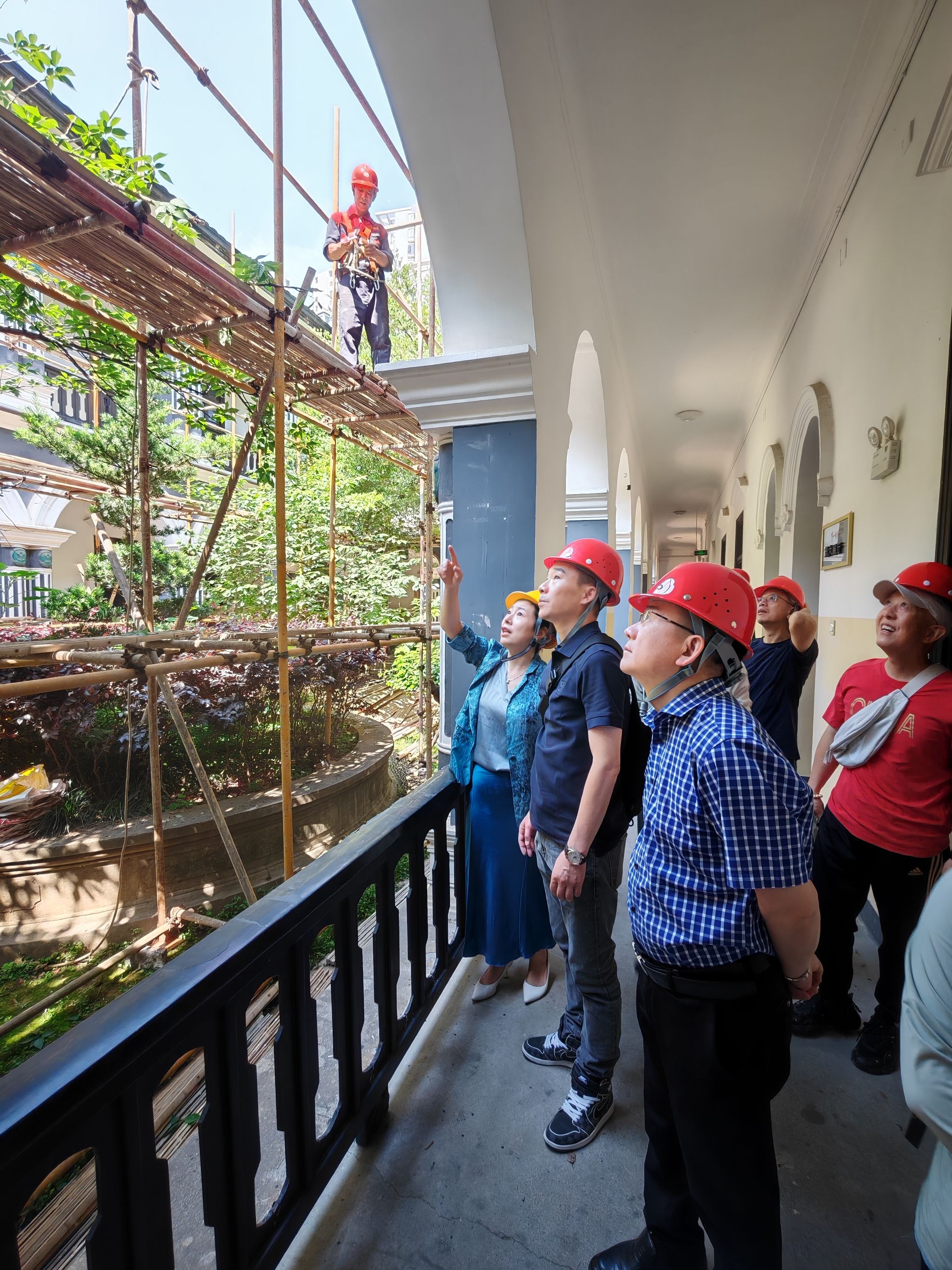 检查期间,他们勘察了文物建筑的损朽情况,了解修复工艺,并协调解决相关联动问题。鲁云生强调,施工方必须高度重视师生安全、文物安全以及消防安全等问题。杨丹要求施工方注意工期进度,保护景观绿植,并协调了多项具体工作。