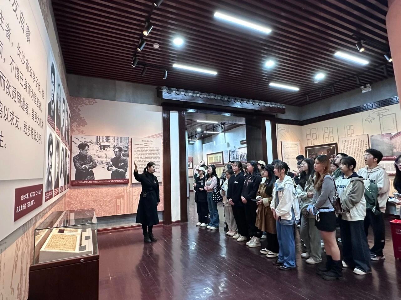 参观过程中,学生们紧跟讲解员的步伐,聚精会神地聆听毛泽东等老一辈革命家在第一师范的求学故事、工作经历以及早期的革命风云,仔细观赏馆内珍藏的文物与历史资料,深刻感受到那段波澜壮阔的历史岁月所带来的震撼。讨论课上,大家围绕“毛泽东、蔡和森等中国的先进分子为什么和怎样选择了马克思主义?”“毛泽东为什么说中国共产党的成立是‘开天辟地的大事变’?”等问题展开热烈讨论,各抒己见,思想的火花在交流中不断碰撞。