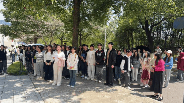 随后,两位同学作为代表进行实地讲解,有人初时紧张到声音发颤,随后也渐入佳境。春日的阳光穿过树影斑驳洒落,年轻的身影与百年红墙构成一幅动人的画卷。