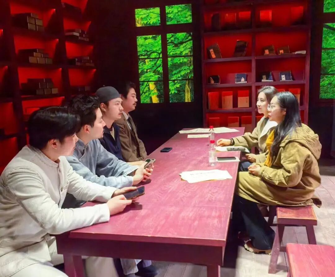 在考察过程中,邹磊和熊灿星老师细致观摩了剧场的舞台设计、演员表演、剧情编排及互动环节,深入思考沉浸式体验对宣教工作的启发。剧组负责人称,团队依据史实精心还原场景,深入揣摩角色,力求专业表演让观众如临其境,感受革命先辈的理想情怀。