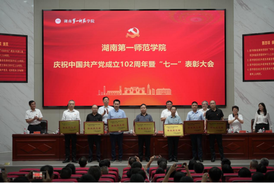 6月29日上午,庆祝中国共产党成立102周年暨“七一”表彰大会在我校东方红校区百熙楼228报告厅举行。校党委书记罗成翼出席会议并讲话,党委副书记、校长胡穗主持会议,校党委副书记李克勤宣读各项获奖名单。颜蒹葭老师受杨丹院长(馆长)委派,代为出席会议,并领取了校级“样板党支部”奖匾。