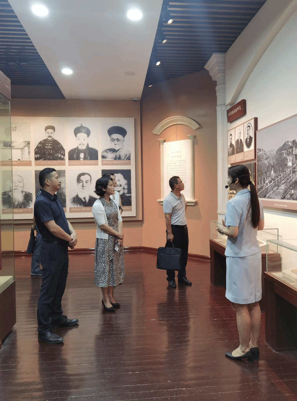 调研组在宣教科邹磊的带领下参观了毛泽东与第一师范纪念馆的旧址和展厅。随后,调研组一行与我馆杨丹副馆长(主持工作)、张颖副馆长及相关人员进行座谈交流。会上,双方就加强红色教育培训,开发宣教产品,加强文旅品牌运营等工作进行了交流。双方特别就毛泽东同志在衡阳开展革命工作的经历如何合作开展研究,开发红色研学项目等事宜进行了深入地探讨。杨丹对衡阳市委党史研究室主任谢虹一行的到来表示热烈欢迎,希望双方后续加强交流合作,互相借鉴共享研究成果,共同开创红色场馆建设新局面