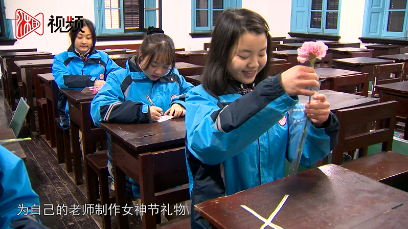 3月8日,国际妇女节。湖南第一师范旧址纪念馆学生志愿讲解队队员,为自己的老师制作女神节礼物。手绘贺卡,亲自包花,承载了学生们满满的爱意和感恩之情。