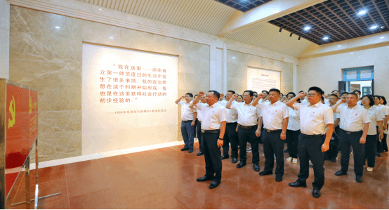 为进一步丰富学习形式、增强学习效果,引导党员干部铭记光辉历史、牢记初心使命,弘扬优良传统、传承红色基因。6月28日上午,我院组织党员干部来到湖南第一师范开展“追寻红色足迹 赓续红色血脉”主题党日活动,进行现场教学、重温入党誓词、聆听专题党课。全体在家院领导,副科级及以上干部参加活动。