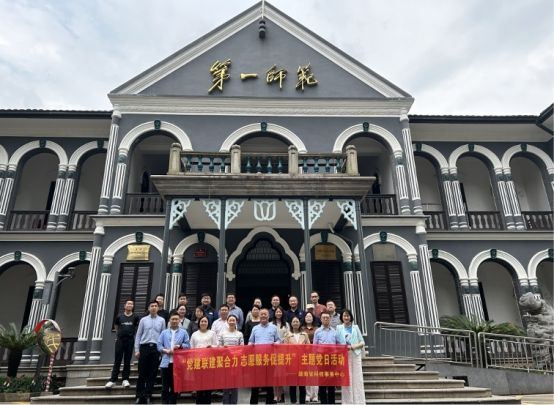 在湖南第一师范学院,大家追寻习近平总书记考察足迹,进一步深入学习习近平总书记在湖南考察时的重要讲话和指示精神,参观毛泽东与第一师范纪念馆,了解青年毛泽东在此求学、生活和革命的事迹,接受精神再洗礼。在纪念馆大厅,大家重温了入党誓词。