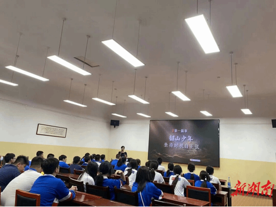 参观结束,毛泽东与第一师范纪念馆副馆长张颖给大家上了一堂《立报国志,做栋梁材—— 青年毛泽东的成长之路及启示》思政课,沉浸式讲述少年毛泽东辗转求学的故事,并引导同学们思考新时代的青少年要怎样传承红色基因,如何做强国建设、民族复兴大任的栋梁之材。