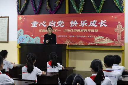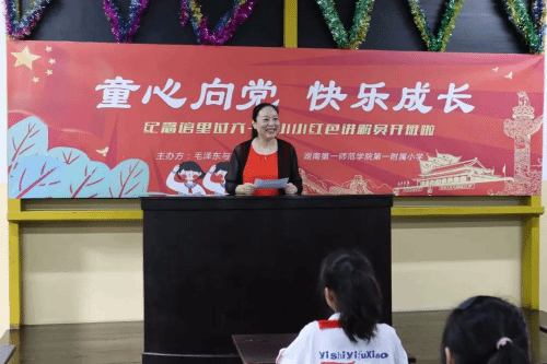 仪式中,毛泽东与第一师范纪念馆副馆长杨丹发表了热情洋溢的致辞,杨馆长说:“第一师范有着丰厚的红色文化积淀,这是我们一师人宝贵的精神财富。希望每一名红领巾志愿讲解员能通过讲述一师的历史人物、红色故事和革命精神,让红色种子在更多的附小孩子们心中生根发芽、茁壮成长。”